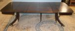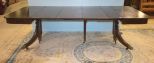 Rectangular Duncan Phyfe style dining table with brass paw feet, four leaves, 43"w., 47"d., 29"h, 3 leaves 17"w., 1 leaf 9"w. Rectangular Duncan Phyfe style dining table with brass paw feet, four leaves, 43"w., 47"d., 29"h, 3 leaves 17"w., 1 leaf 9"w.