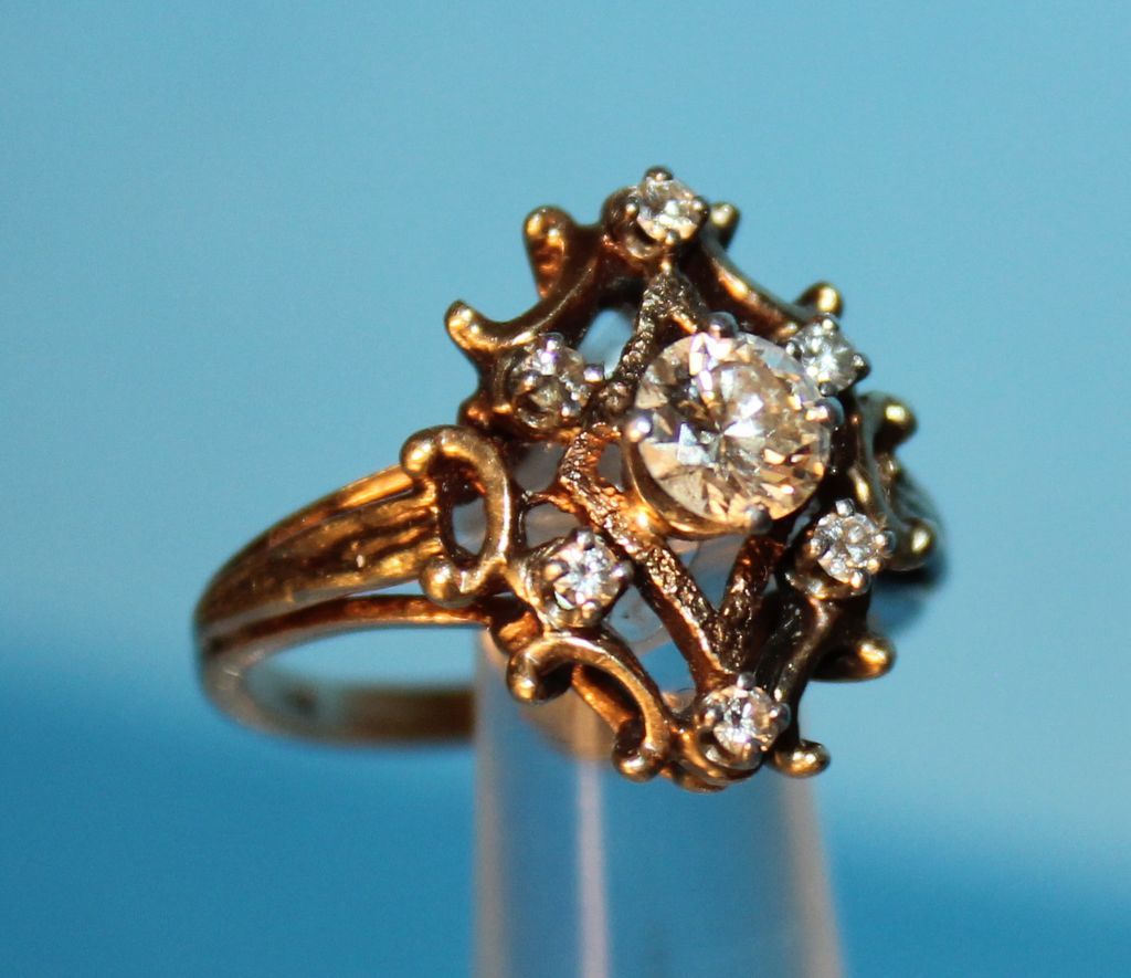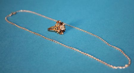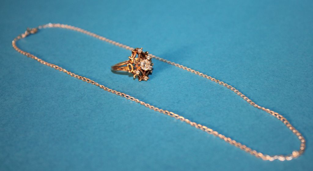 14kt gold ring with approximately 1/3 kt. in diamonds and small .825 sterling chain 14kt gold ring with approximately 1/3 kt. in diamonds and small .825 sterling chain