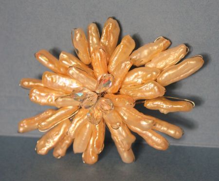 Handmade Tahitian pearls and Swarovski crystals broach marked N Handmade Tahitian pearls and Swarovski crystals broach marked N
