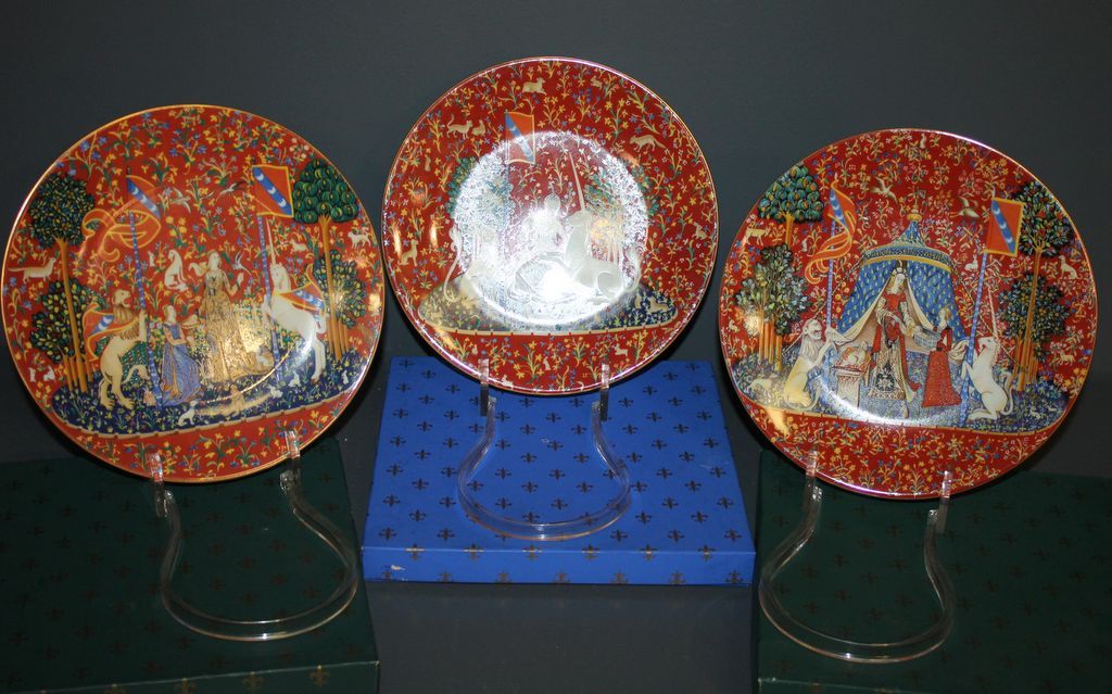 Three Limoge lady and unicorn limited edition plates 9"dia. Three Limoge lady and unicorn limited edition plates 9"dia.