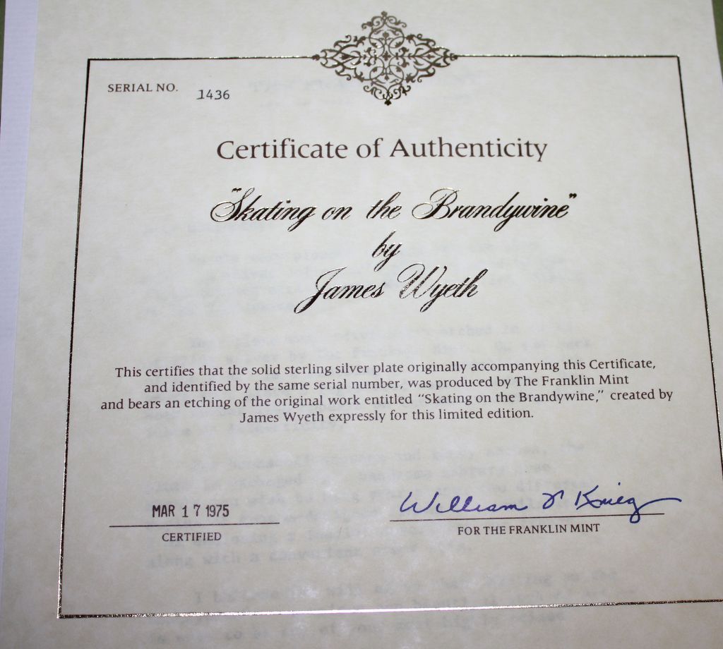 "Along the Brandywine" by James Wyeth, 8"dia., and "Skating on the Brandywine" "Along the Brandywine" by James Wyeth, 8"dia., and "Skating on the Brandywine"