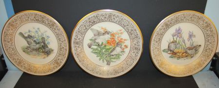Three 10"dia Lenox Boehm bird plates, 1978 mockingbirds, 1979 crowned Kinglets, 1981 Eastern Phoebe Three 10"dia Lenox Boehm bird plates, 1978 mockingbirds, 1979 crowned Kinglets, 1981 Eastern Phoebe