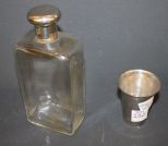 Sterling Denmark 3"h., jigger cup (bent on lip) and clear Flask with silver plate cap marked Germany. Sterling Denmark 3"h., jigger cup (bent on lip) and clear Flask with silver plate cap marked Germany.