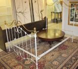 Standard double size iron and brass bed, 61"h. Standard double size iron and brass bed, 61"h.
