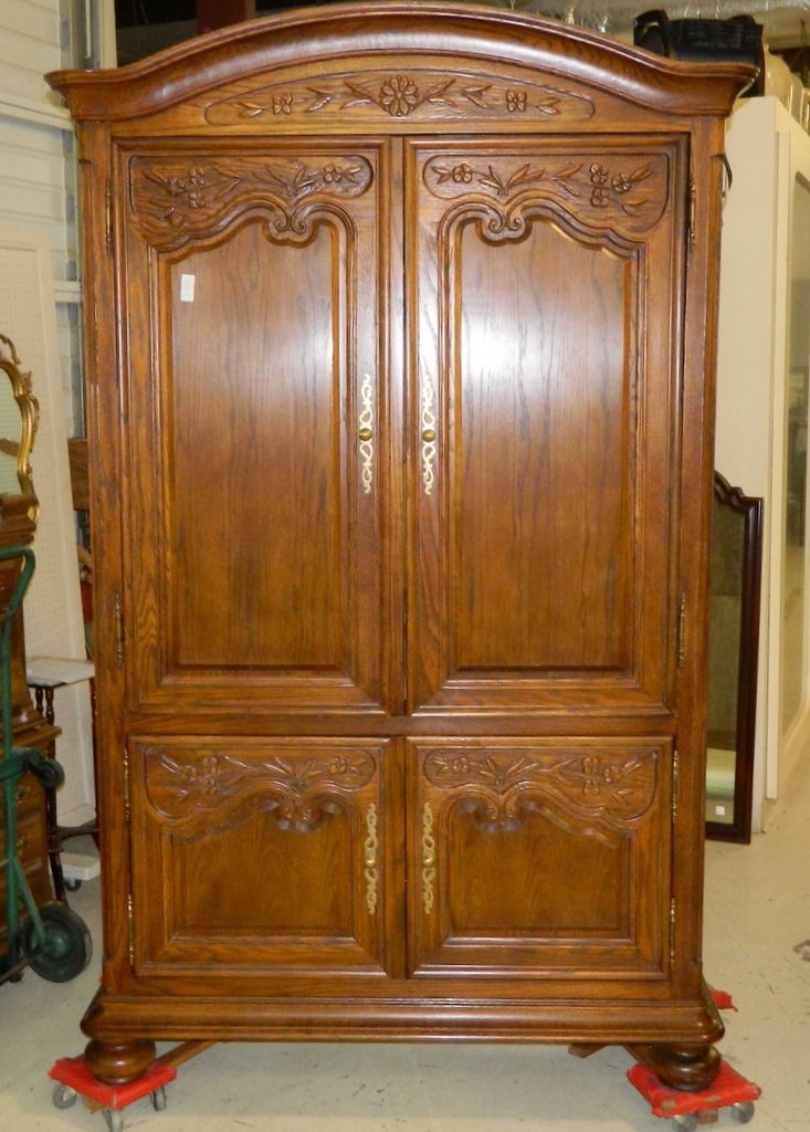 Entertainment center with four doors, bonnet top, 48"w, 22"d., 86"h. Entertainment center with four doors, bonnet top, 48"w, 22"d., 86"h.