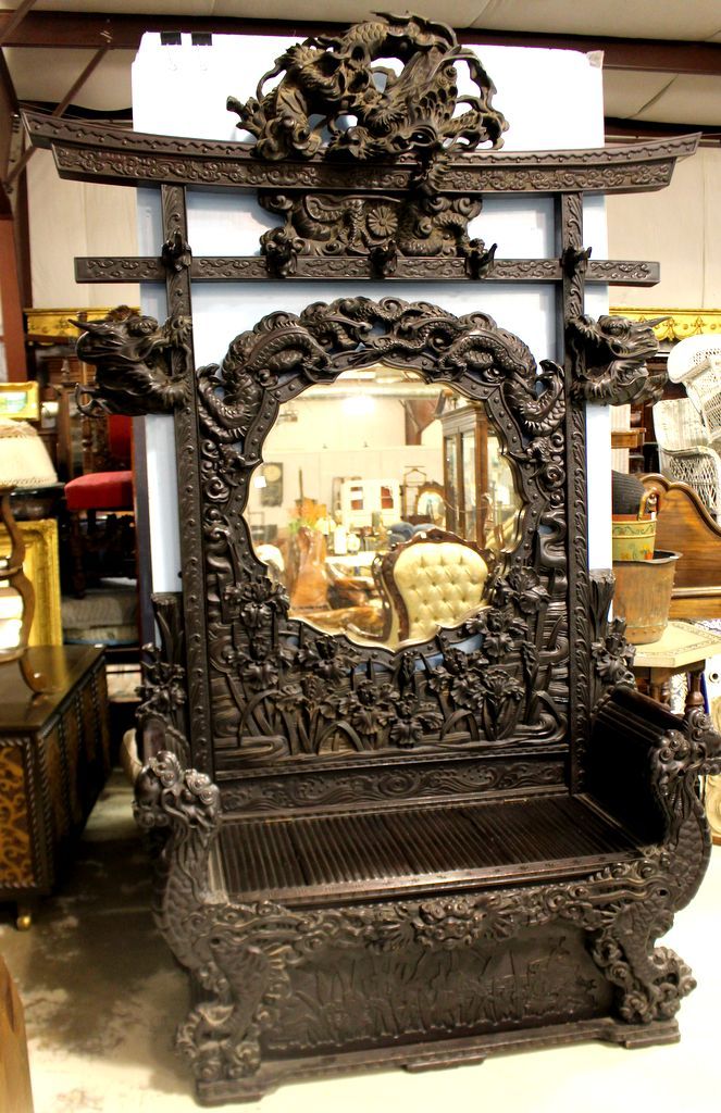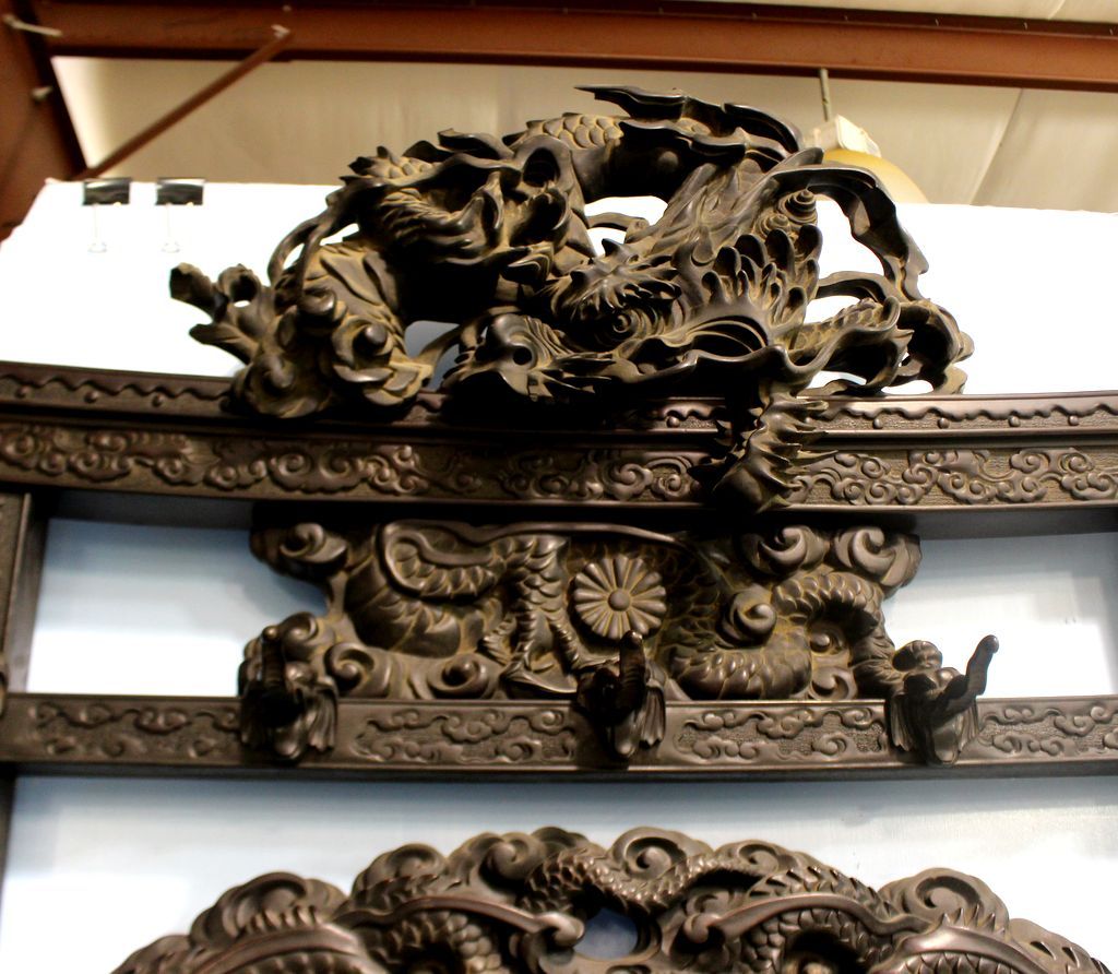 709 Japanese Hall Stand with Intricately Carvings of Dragons