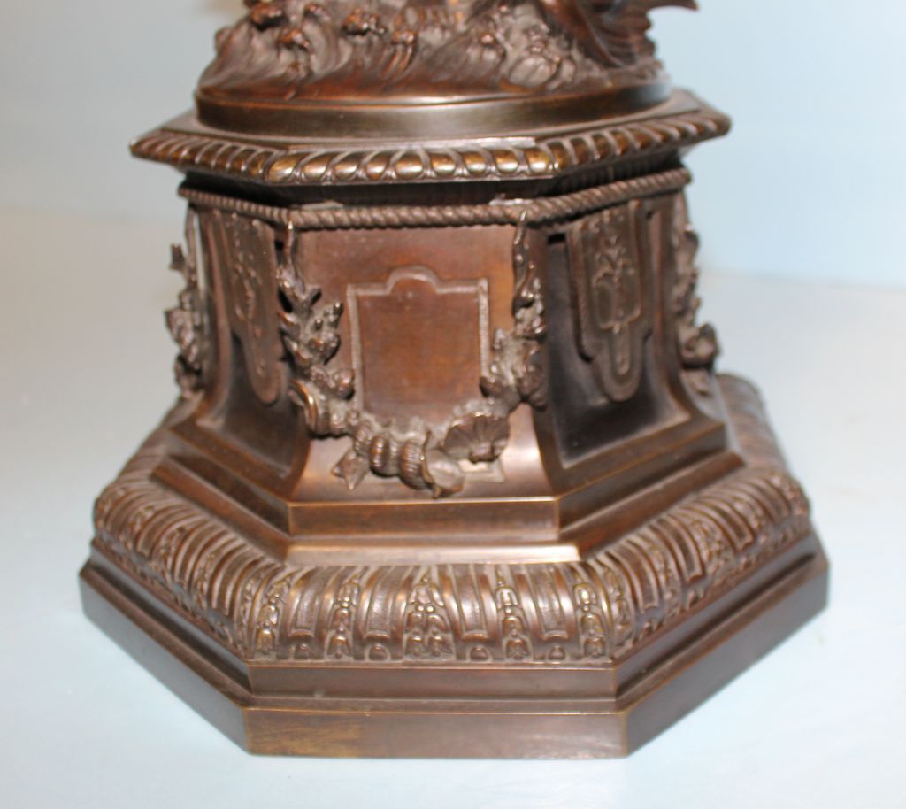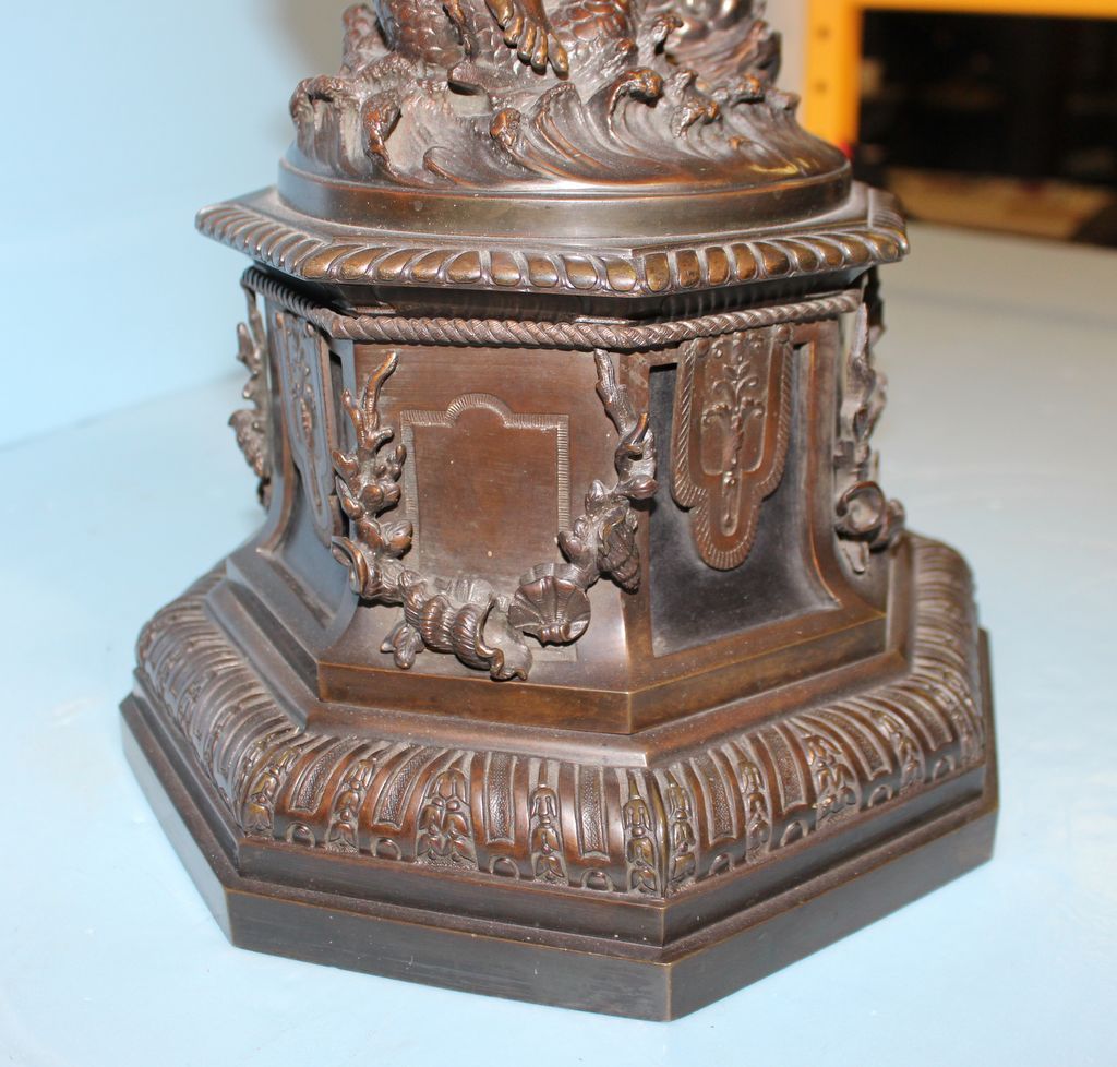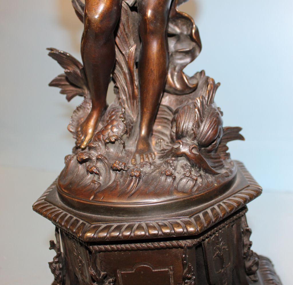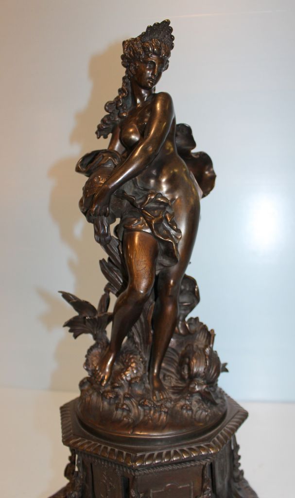 Greek Myth bronze of Amphitrite. Sea Goddess Amphitrite Sculpture standing on octagon shaped base with elaborate panels. Matches the bronze of Neptune; 28" h., 12" dia. Greek Myth bronze of Amphitrite. Sea Goddess Amphitrite Sculpture standing on octagon shaped base with elaborate panels. Matches the bronze of Neptune; 28" h., 12" dia.