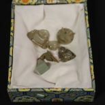 Various jade buttons in different sizes. Birds, fruit, dragon, and Buddha 1/2" dia. Various jade buttons in different sizes. Birds, fruit, dragon, and Buddha 1/2" dia.