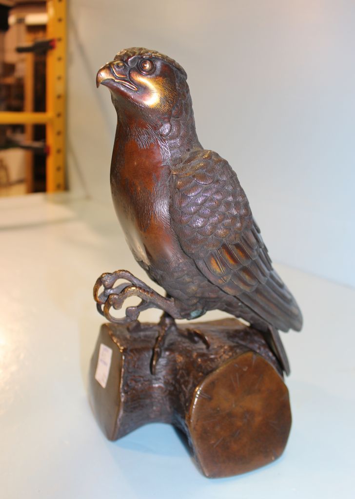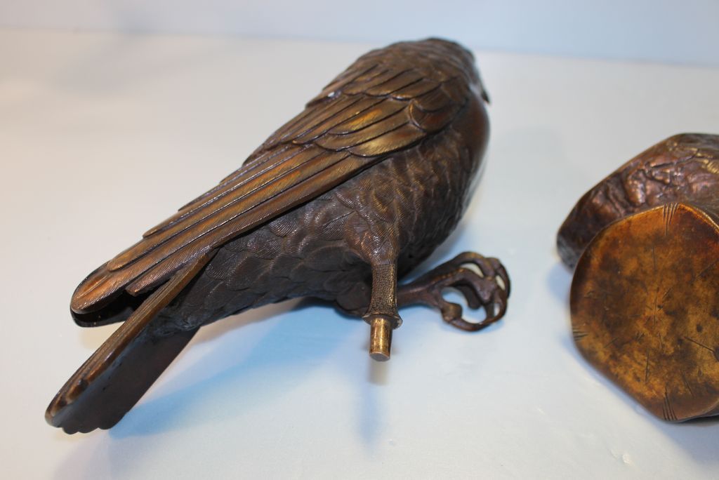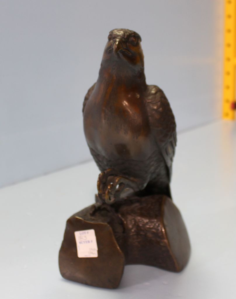 Desirable bronze eagle incense burner, unsigned; 12" h. ; base, 8" w., 6" d. Desirable bronze eagle incense burner, unsigned; 12" h. ; base, 8" w., 6" d.