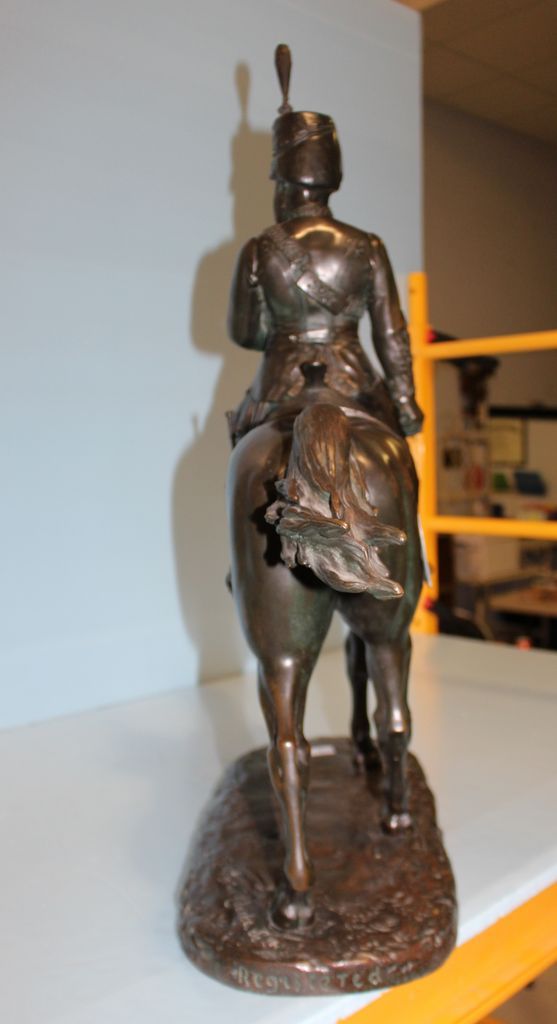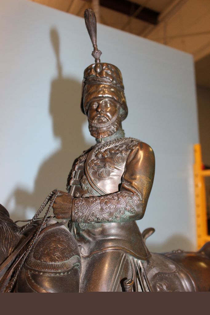 Large bronze sculpture of Edward VII on horseback by Remington Clarke (English 1880-1920). Clarke was active in the late nineteenth to twentieth century. An equestrian portrait of King Edward VII as Prince of Wales bronze with dark patina. Inscribed "Pub by W. Cooper, 108 New Bond Street" ; 29 1/2" h., 23" w. Large bronze sculpture of Edward VII on horseback by Remington Clarke (English 1880-1920). Clarke was active in the late nineteenth to twentieth century. An equestrian portrait of King Edward VII as Prince of Wales bronze with dark patina. Inscribed "Pub by W. Cooper, 108 New Bond Street" ; 29 1/2" h., 23" w.