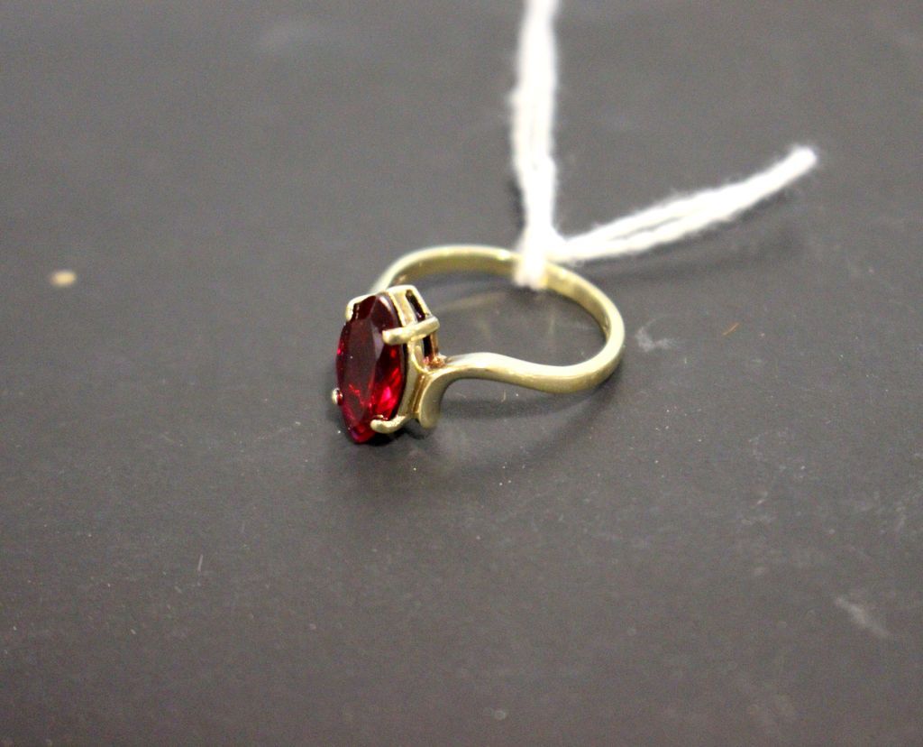 Ladies yellow gold synthetic ruby ring. Ring is size 7 Ladies yellow gold synthetic ruby ring. Ring is size 7