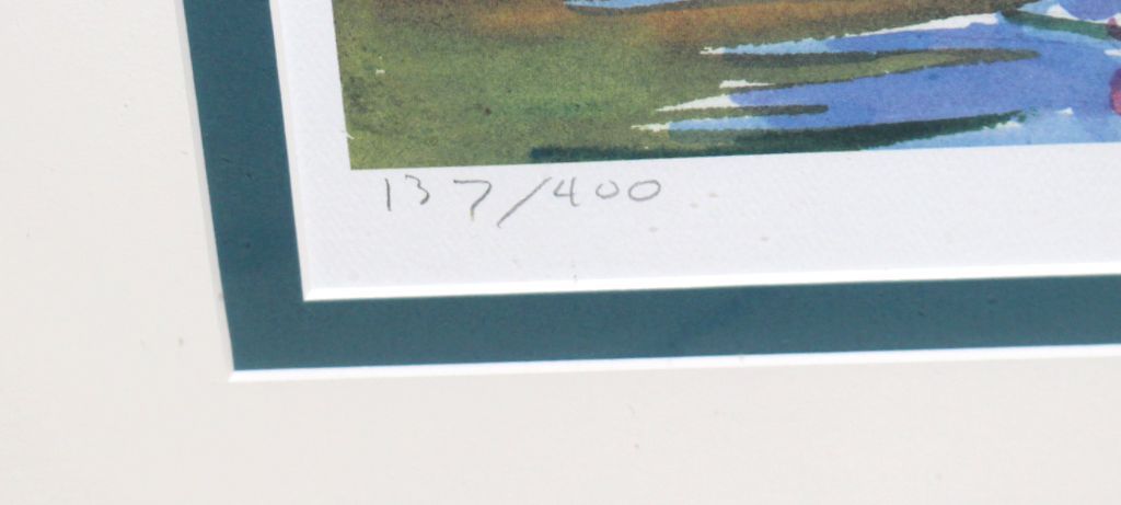 Limited edition print of flamingo's by Wyatt Waters 137/400; 24 1/2" w., 28 1/2" h. Limited edition print of flamingo's by Wyatt Waters 137/400; 24 1/2" w., 28 1/2" h.
