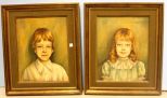 228 Pair of Oil Portraits of Children by Sally Spencer