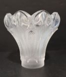 Large lalique crystal lotus leaf vase, etched on bottom Lalique France; 9" h. Large lalique crystal lotus leaf vase, etched on bottom Lalique France; 9" h.