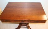 Mahogany square top empire center table with octagon shaped base; 39 1/2" w., 29" dia., 27 1/2" h. Mahogany square top empire center table with octagon shaped base; 39 1/2" w., 29" dia., 27 1/2" h.