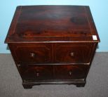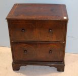 Small two drawer chest with string inlay, bracket feet (completely re-worked) ; 25" w., 23 1/2" dia., 37" h. Small two drawer chest with string inlay, bracket feet (completely re-worked) ; 25" w., 23 1/2" dia., 37" h.