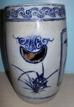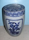Antique Chinese ceramic garden seat which is decorating into panels of blue flowers; 12" dia., 21" h. Antique Chinese ceramic garden seat which is decorating into panels of blue flowers; 12" dia., 21" h.