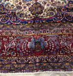 Kerman Persian wool rug has red field; 11' 6" w., 22' l. Kerman Persian wool rug has red field; 11' 6" w., 22' l.
