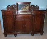 High style mahogany empire drop center sideboard with beveled mirror, cornucopia carving, columns on carved melon feet, signed Drexel Heritage; 64 1/2" w., 23" dia., 57 1/2" h. High style mahogany empire drop center sideboard with beveled mirror, cornucopia carving, columns on carved melon feet, signed Drexel Heritage; 64 1/2" w., 23" dia., 57 1/2" h.