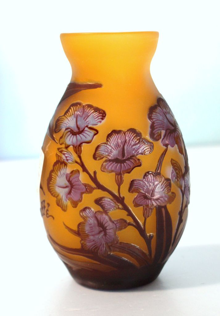 Beautiful reproduction signed Galle' vase; 6" h. Beautiful reproduction signed Galle' vase; 6" h.