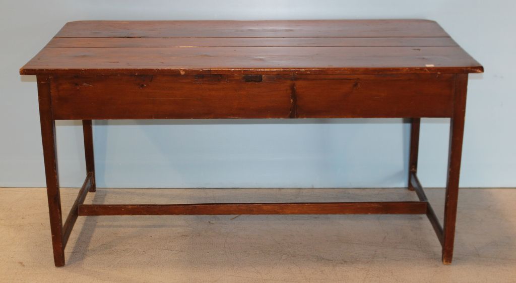 Antique pine harvest table; 61 1/2" w., 34 1/2" d., 29 1/2" h. Antique pine harvest table; 61 1/2" w., 34 1/2" d., 29 1/2" h.