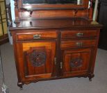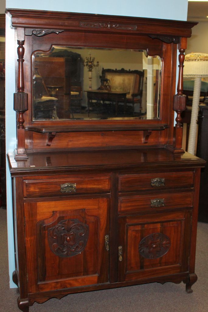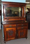 Late nineteenth century mahogany English server. Two section server in which the top has beveled mirror and Late nineteenth century mahogany English server. Two section server in which the top has beveled mirror and