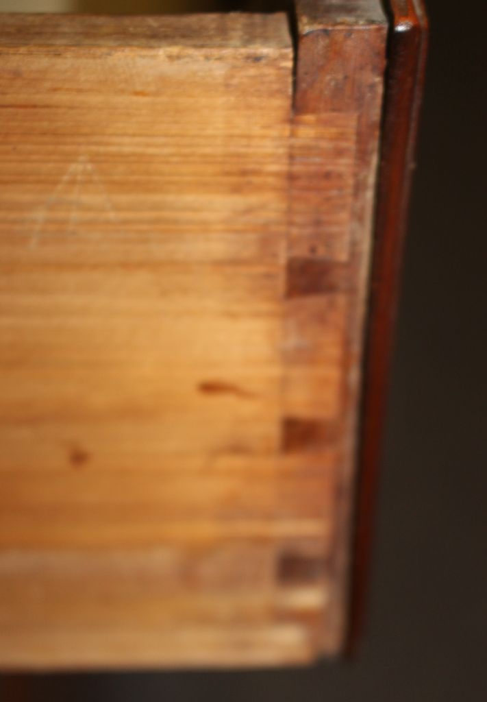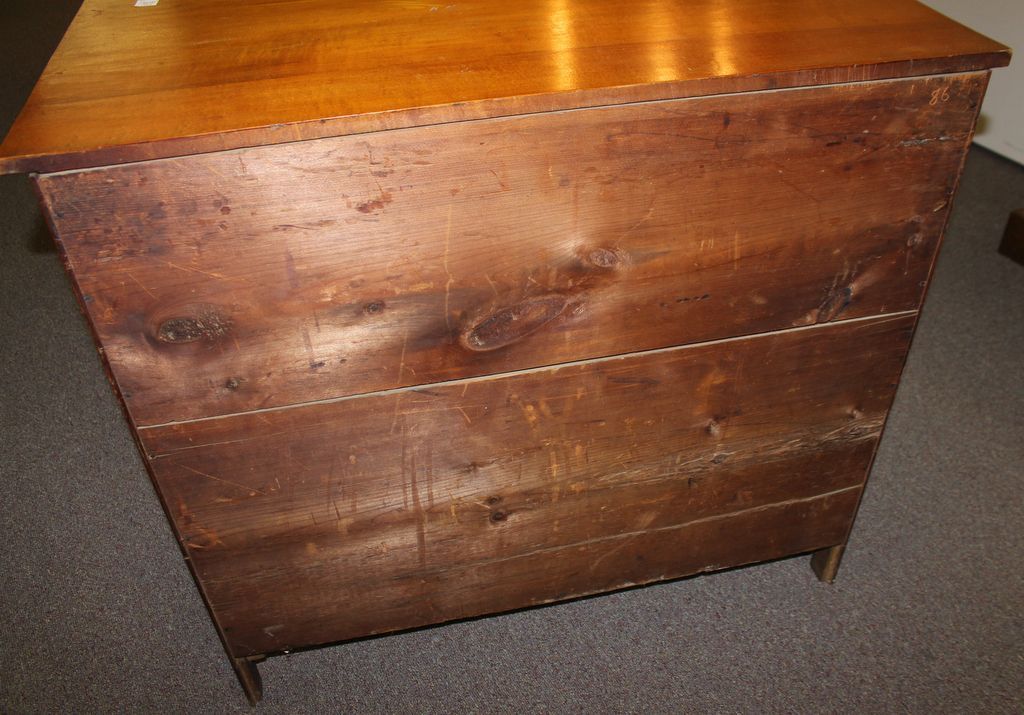 Early 1800's cherry American chest. Four drawer cherry chest that has great visible dovetails and hepplewhite hardware; 38" w., 18" d., 34 1/2" h. Early 1800's cherry American chest. Four drawer cherry chest that has great visible dovetails and hepplewhite hardware; 38" w., 18" d., 34 1/2" h.