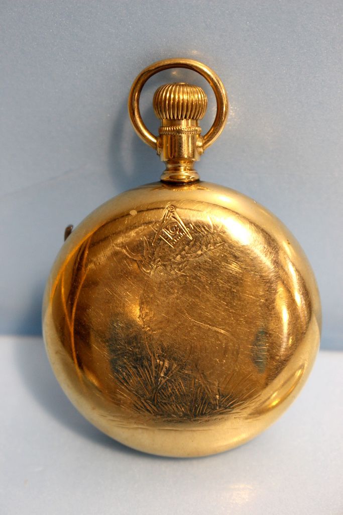 Vintage 21 Jewel open face circa 1900 Hamilton Railroad pocket watch with etched stag on back Vintage 21 Jewel open face circa 1900 Hamilton Railroad pocket watch with etched stag on back