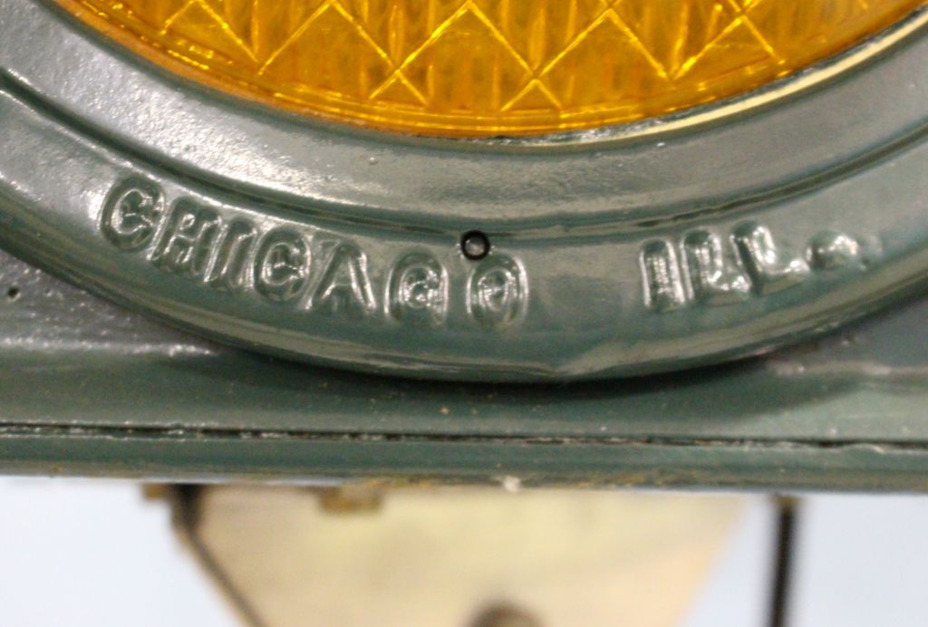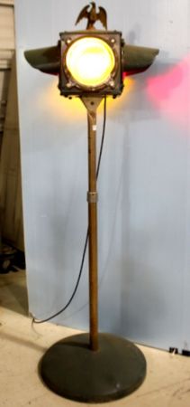 W.S. Darley & Company, Chicago Illinois. Four sided cast aluminum antique traffic light, on stand with eagle brass finial on top of light. 79" h. W.S. Darley & Company, Chicago Illinois. Four sided cast aluminum antique traffic light, on stand with eagle brass finial on top of light. 79" h.