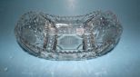 Early twentieth century cut glass banana boat bowl with etched flowers. 11 1/2" w., 6 1/2" d. Early twentieth century cut glass banana boat bowl with etched flowers. 11 1/2" w., 6 1/2" d.