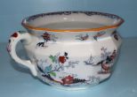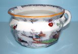 Porcelain chamber pot marked mason's Patent Ironstone China with oriental design. 5 1/4" h., 9" dia. Porcelain chamber pot marked mason's Patent Ironstone China with oriental design. 5 1/4" h., 9" dia.