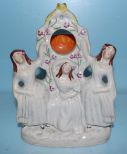 Late nineteenth century Staffordshire figurine of three ladies watch holder. 8" w., 11" h. Late nineteenth century Staffordshire figurine of three ladies watch holder. 8" w., 11" h.