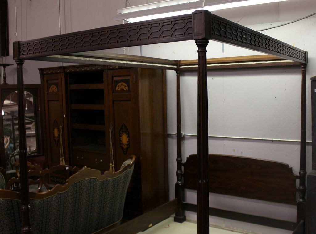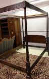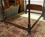 Mahogany pencil post bed with canopy; queen size, 82 1/2" h. Mahogany pencil post bed with canopy; queen size, 82 1/2" h.