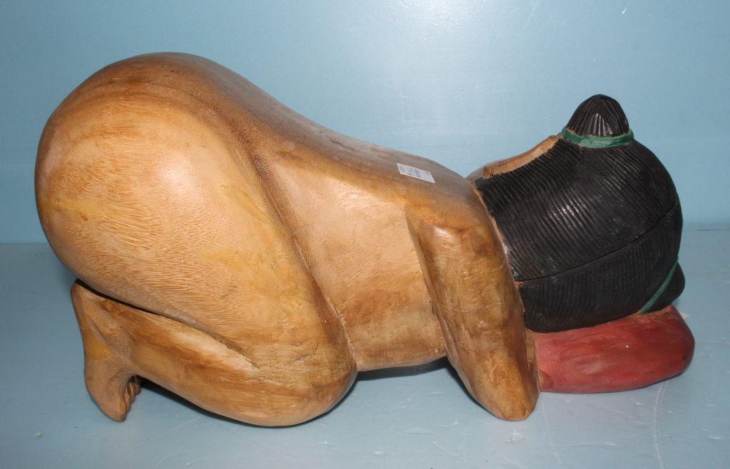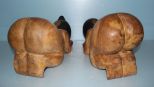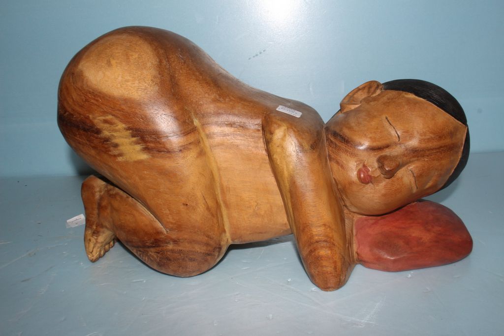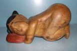 Pair hand carved Elm wood sleeping Asian children pillows; 15" w., 10" h. Pair hand carved Elm wood sleeping Asian children pillows; 15" w., 10" h.