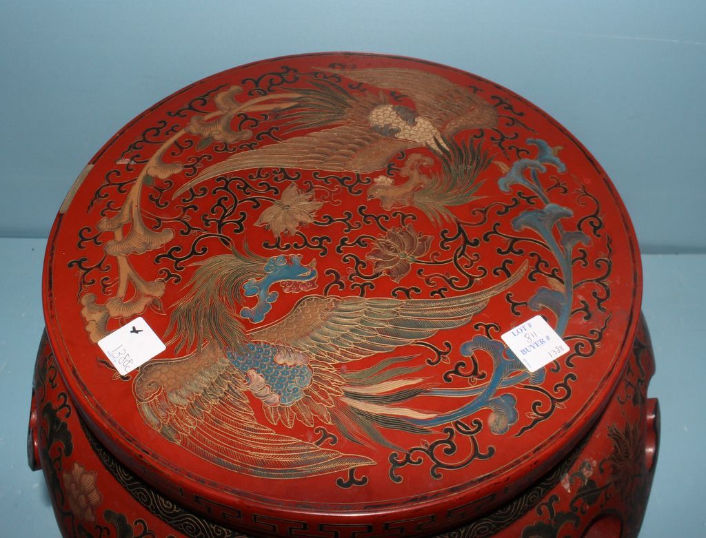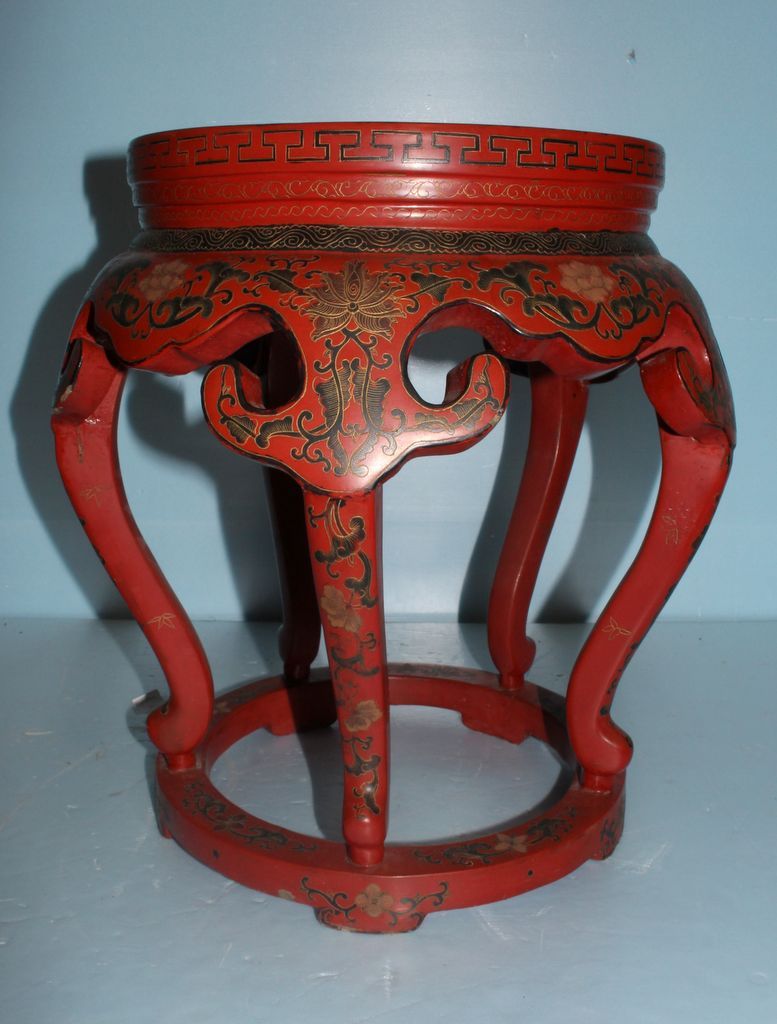 811 Chinese Coromandel Red Cinnabar Lacquer Stool