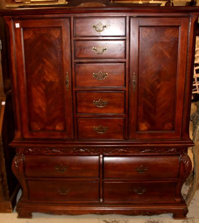 Contemporary wardrobe with center drawers and flanked by doors over two drawers. 56" w., 22" d., 66" h. Contemporary wardrobe with center drawers and flanked by doors over two drawers. 56" w., 22" d., 66" h.