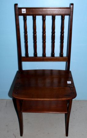 Early twentieth century walnut chair that makes a ladder; 16" w., 13" d., 35 1/2" h. Early twentieth century walnut chair that makes a ladder; 16" w., 13" d., 35 1/2" h.