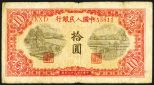 2027 Peoples Bank of China, 1949 Issue Banknote. China, 1949, 10 Yuan, P-815 (S/M#C282-25), Block 9 10 1 (IX X I), S/N 55811, Issued banknote, red and black, Fine.