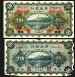 2067 Sino-Scandinavian Bank, 1922 "Peking" Issue. China, Lot of 2 notes, Includes 10 Yuan, P-S588, S/M#H192-6a, Fine with lower right and right margins chewed up slightly and 10 Yuan, P-S589, S/M#H192-1c, VF to Choice VF, Both Issued banknotes, Green
