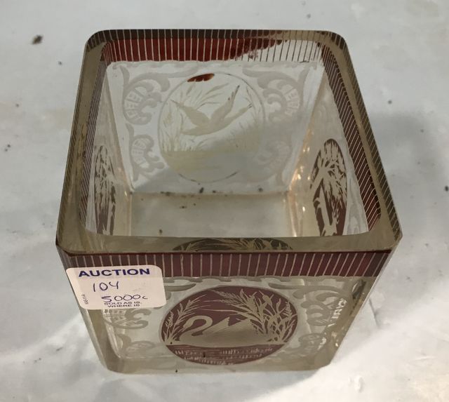 Red on Clear Wildlife Square Bowl, 4"h., 4"sq. Red on Clear Wildlife Square Bowl, 4"h., 4"sq.