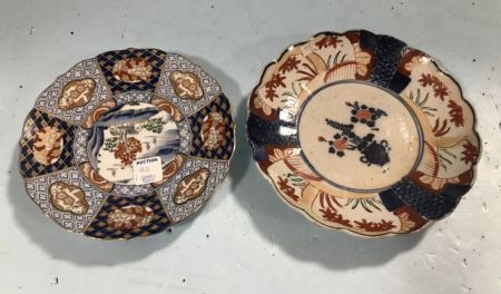 Pair of Imari Plates, mountain scene signed 7 "dia., flower in big pot 8 "dia, both scalloped rims. Pair of Imari Plates, mountain scene signed 7 "dia., flower in big pot 8 "dia, both scalloped rims.