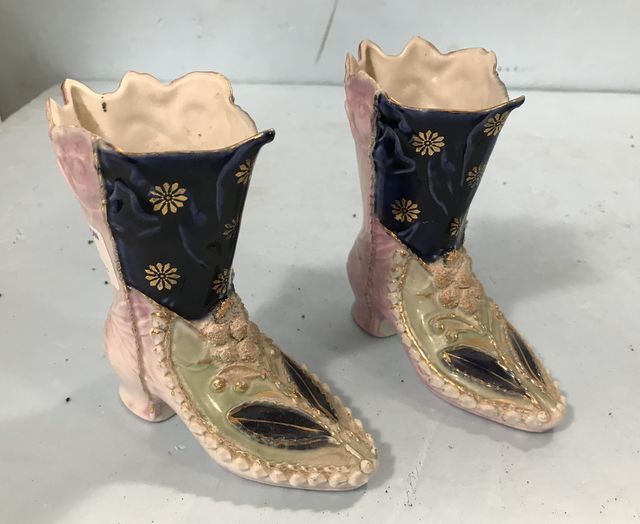 139 Pair of High Top Porcelain Hand Painted Ladies Shoes