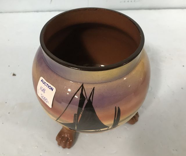 Torquay Rosy Sunset Sailing Boat Pottery Bowl, Watcombe, footed, 5 1/2"h. Torquay Rosy Sunset Sailing Boat Pottery Bowl, Watcombe, footed, 5 1/2"h.