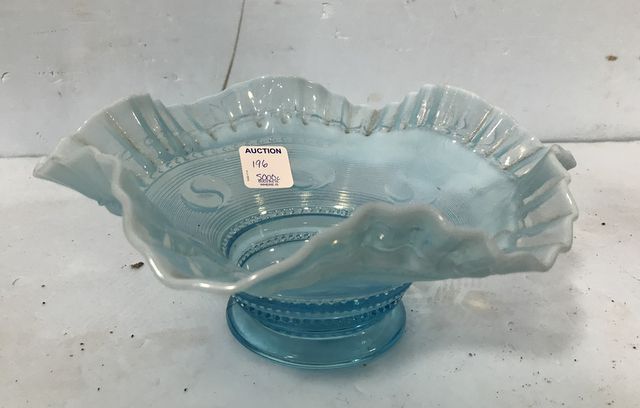 196 Blue Opalescent Crested Bowl