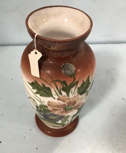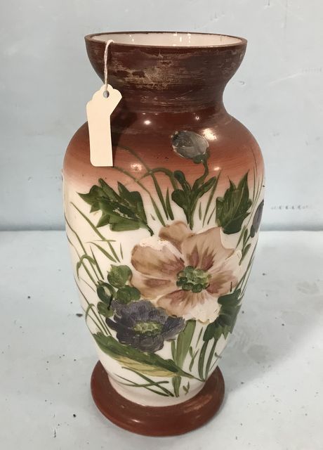 Hand Painted Victorian Art Glass Vase, 11"h. Hand Painted Victorian Art Glass Vase, 11"h.