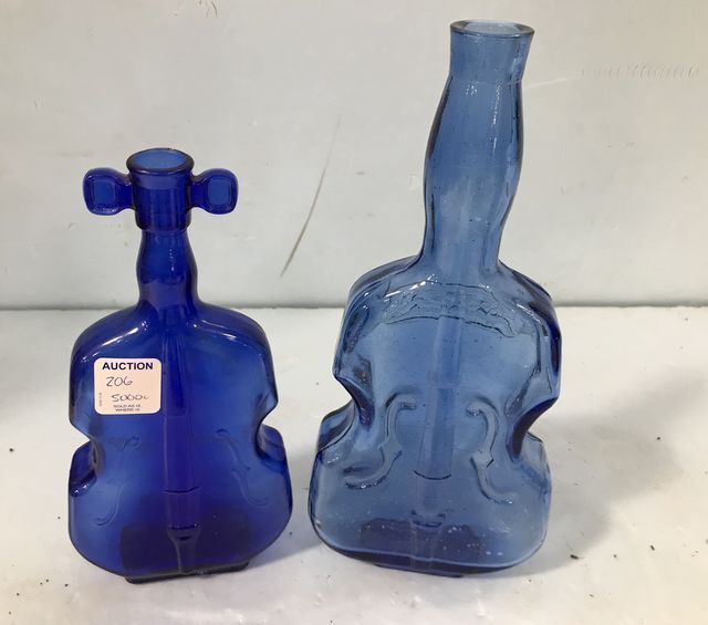 Two Blue Violin Vine Holders, Blue, 10"h., 8"h. Two Blue Violin Vine Holders, Blue, 10"h., 8"h.