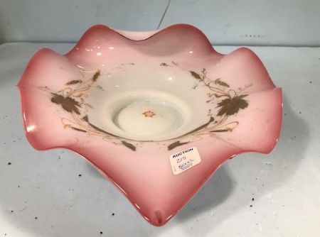 1800's Pontil Mt. Washington Fluted Bowl, curled lip, hand painted, 11"w. 1800's Pontil Mt. Washington Fluted Bowl, curled lip, hand painted, 11"w.