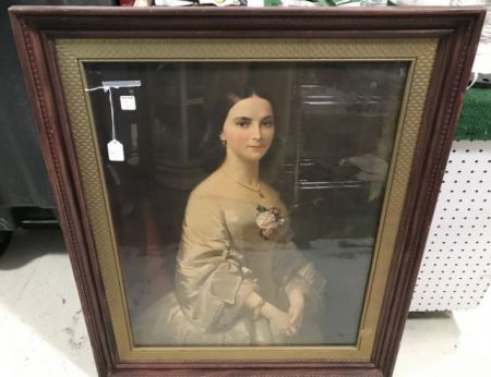E. Correns Framed Lady Print, Vintage wood framed, glassed, 29"w., 34"h. E. Correns Framed Lady Print, Vintage wood framed, glassed, 29"w., 34"h.