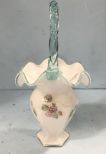 Fenton Modern Aqua Crest Basket, hand painted and signed, 12"h. Fenton Modern Aqua Crest Basket, hand painted and signed, 12"h.