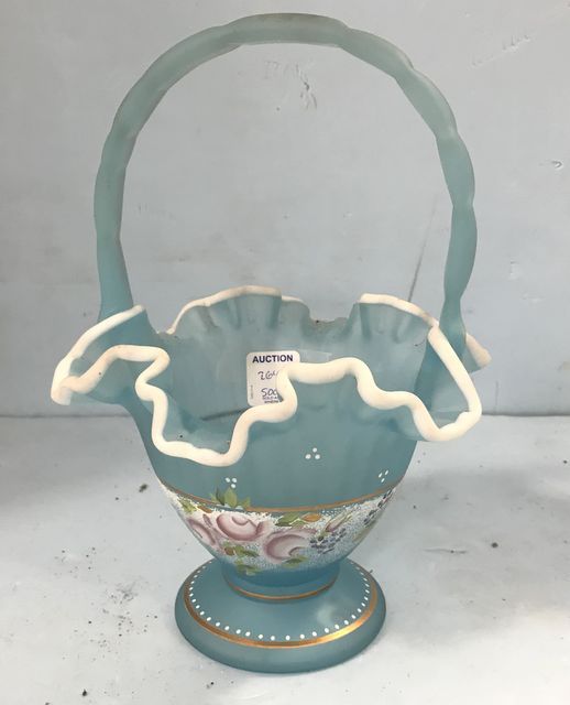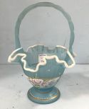 Fenton Modern Blue Snow Crest Basket, hand painted and signed, 10"h. Fenton Modern Blue Snow Crest Basket, hand painted and signed, 10"h.